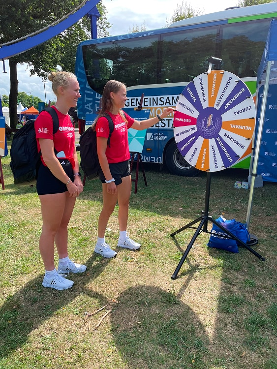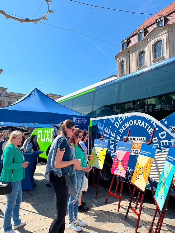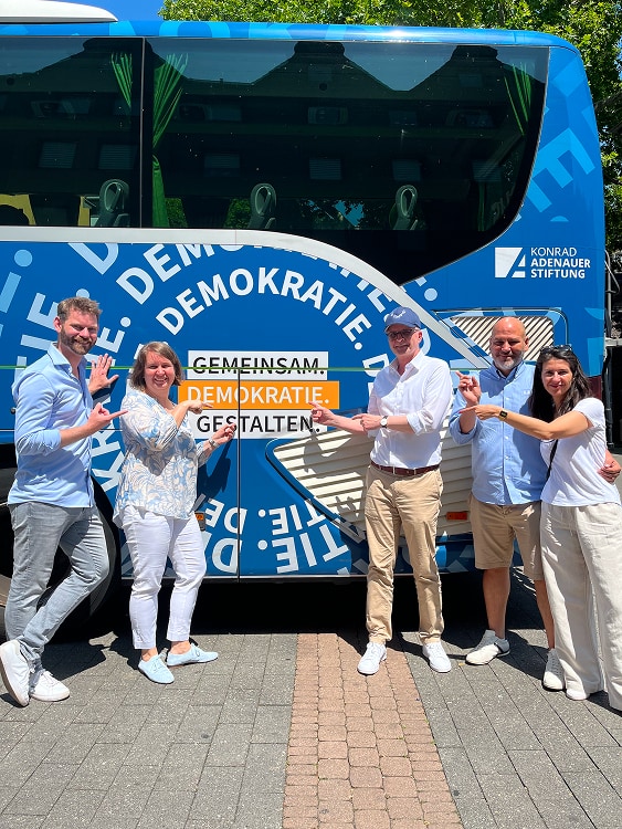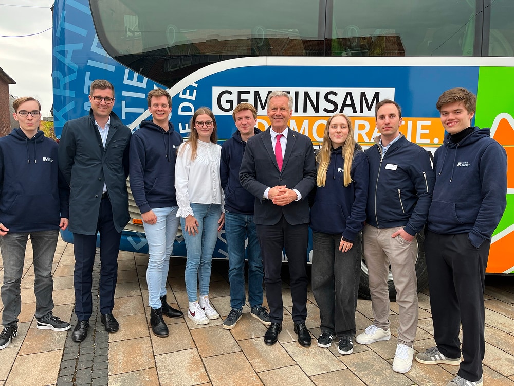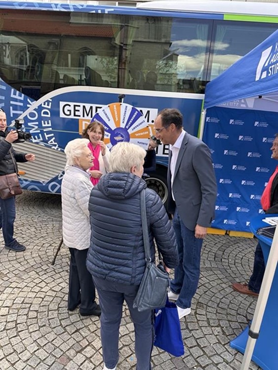 Demokratie ist nicht selbstverständlich. Darauf machen wir mit unserer Demokratiegestalter-Tour aufmerksam. Mit dem Demokratiebus fahren wir quer durch Deutschland und wollen mit Euch ins Gespräch kommen: Was bewegt Euch? Was würdet Ihr verändern, wenn Ihr Bürgermeisterin oder Bürgermeister wärt? Und was läuft schon richtig gut? Unsere Demokratie lebt davon, dass sich Menschen füreinander einsetzen. Also lasst uns zusammenkommen und Gemeinsam.Demokratie.Gestalten.